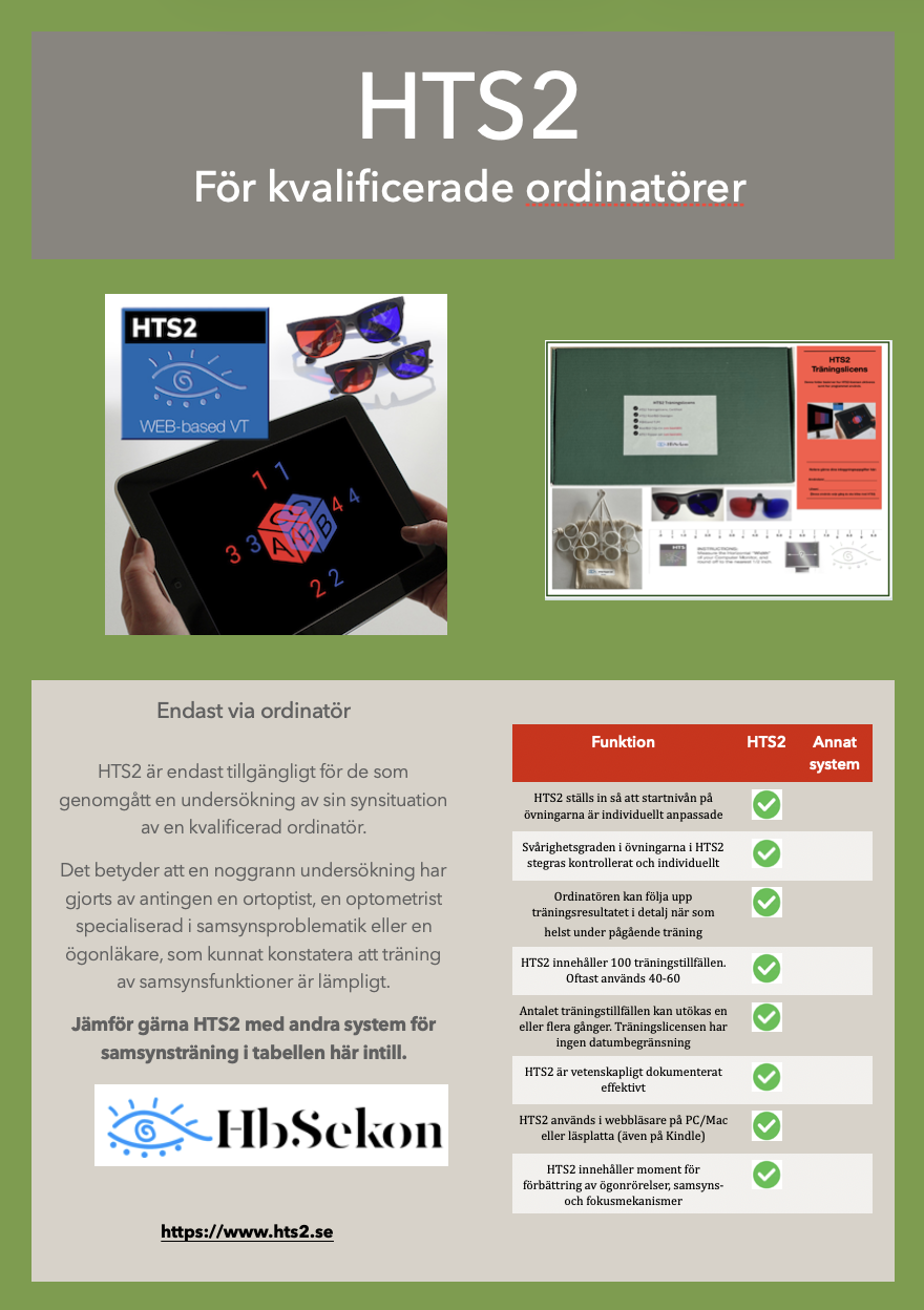 Fördelar att rekommendera HTS2 vid behandling av bristfälliga samsynsfunktioner.